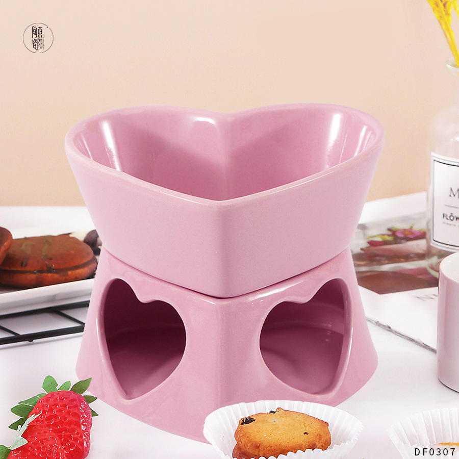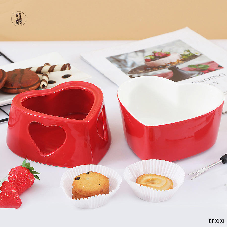 ชุดช็อกโกแลตฟองดูรูปหัวใจเซรามิกตงฟาง ขนาดกลาง ใช้ซ้ำได้ ของขวัญวันวาเลนไทน์ สีแดง