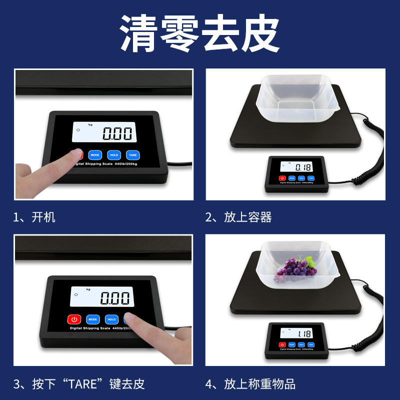 เครื่องชั่งน้ำหนักอิเล็กทรอนิกส์ตงกวน 200 กก. หน้าจอ LCD ความแม่นยำ 10 กรัม เครื่องชั่งเชิงพาณิชย์สำหรับการจัดส่งพัสดุ