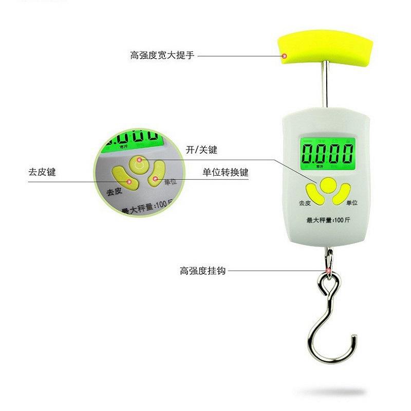 เครื่องชั่งดิจิตอลพกพาขนาดเล็กตงกวน 50 กก. พร้อมตะขอสำหรับชั่งน้ำหนักกระเป๋าเดินทางและการจัดส่งด่วน