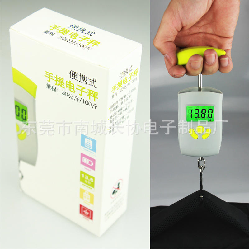 เครื่องชั่งน้ำหนักแบบพกพาตงกวน 50 กก. 10 กรัม เครื่องชั่งกระเป๋าเดินทางขนาดเล็กพร้อมจอแสดงผลดิจิตอลสำหรับการเดินทาง