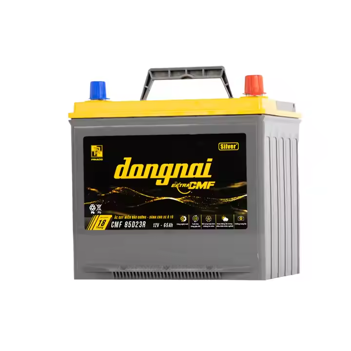Dongnai แบตเตอรี่รถยนต์85D23R CMF 12V 65Ah ฝาสองชั้นโลหะผสมแคลเซียมดีไซน์ป้องกันการสั่นสะเทือนชนิดคาร์บอนสังกะสี