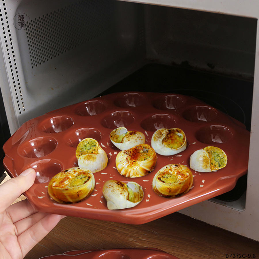 ถาดอบเซรามิคทรงหอยทาก 24 หลุม สีน้ำตาลเข้ม ใช้กับเตาอบได้ เหมาะสำหรับโรงแรม ใช้สำหรับกาแฟ ชา รุ่น DP372G-9.8