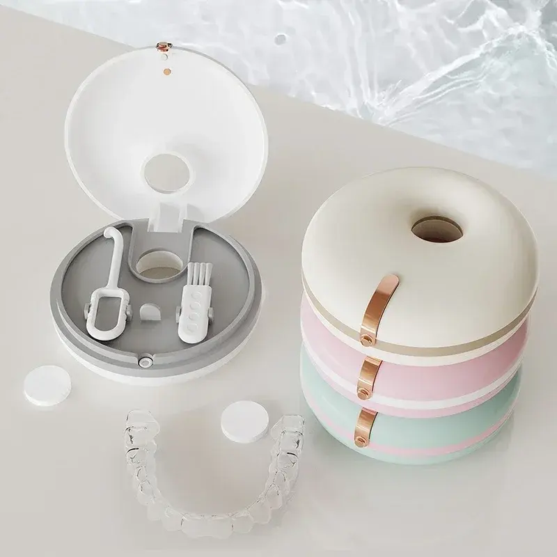 กล่องเก็บฟันปลอมแบบโดนัทกล่องเก็บฟันปลอมแบบพกพาถอดออกได้กล่องเก็บอุปกรณ์จัดฟันแบบมองไม่เห็นสำหรับเด็ก