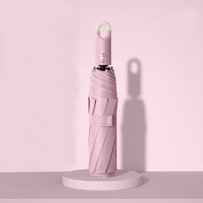 ร่มกันแดดอัตโนมัติแบบสามตอน รุ่น Donut Hook พร้อมโครงเหล็กและยางเคลือบกาวสีดำ ป้องกันรังสียูวี สำหรับผู้ใหญ่
