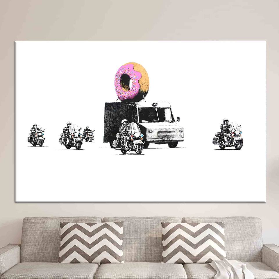 ภาพพิมพ์บนผ้าใบลายโดนัทป้องกันกราฟฟิตี: ภาพพิมพ์ลายรถยนต์สำหรับตกแต่งผนัง, ผ้าใบหุ้ม