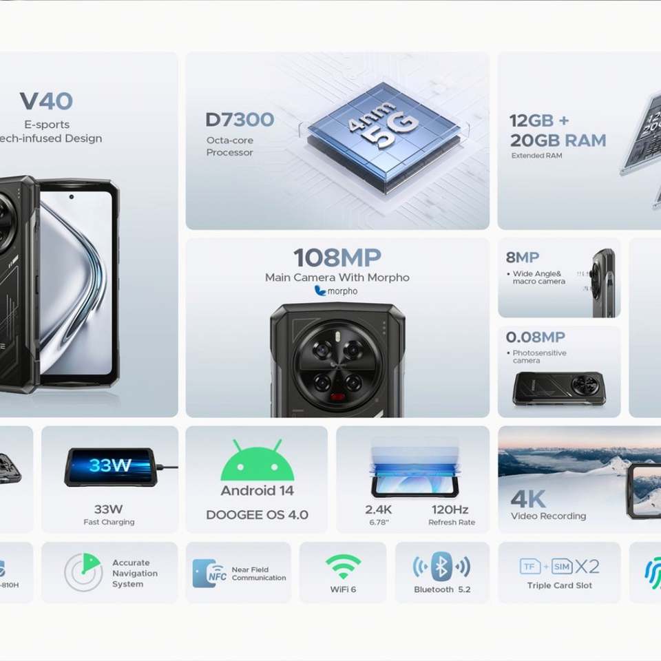 ดูจี V40สมาร์ทโฟนที่ทนทาน12 + 512GB 5G, โทรศัพท์มือถือ NFC รุ่นปลดล็อคทั่วโลกฟังก์ชั่นการมองเห็นกลางคืน108MP V40หลัก8680mAh