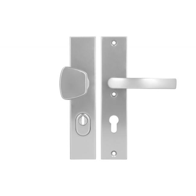 มือจับประตูที่มีการดึง axa Odin 72 PZ 3rd คลาสที่มีการป้องกันกระบอกสูบยืดหยุ่น (ทนไฟ), สี F6 - INOX (ในขณะที่สต็อก La
