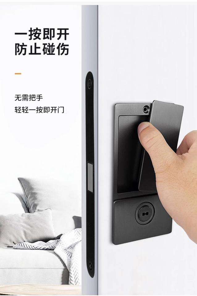 ที่ล็อคประตู-ที่ล็อคประตูบานเลื่อนแบบมินิมอล-ล็อคแบบแบนเงียบ-ภายในห้องน้ำแบบฝังที่จับ-ชนิดแม่เหล็ก