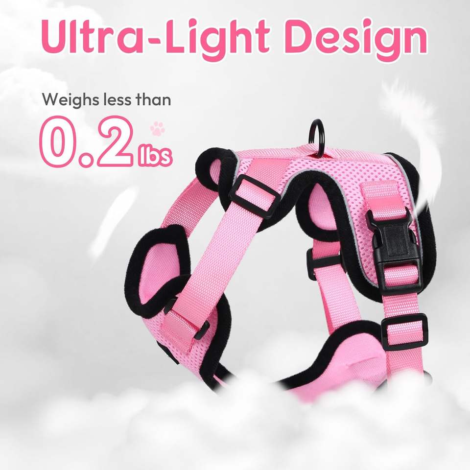 ชุดสายจูงและสายจูงแมวประตู Adar ป้องกันการหนีสายรัดลูกแมวที่ปรับได้ปลอดภัยสำหรับการเดินควบคุมง่ายนุ่มระบายอากาศ