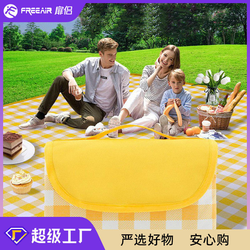 เสื่อปิกนิก Doormate สีเหลืองลายตารางสี่เหลี่ยมผืนผ้า กันความชื้น สำหรับกิจกรรมกลางแจ้ง ตั้งแคมป์ ชายหาด พกพาสะดวก