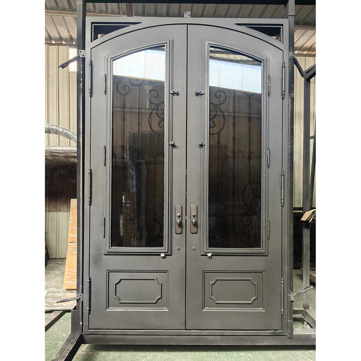 ประตูเหล็กดัด ประตูหน้าบ้าน ประตูเหล็กภายนอก สำหรับบ้าน ประตูเหล็กดัดคู่ กระจกเหล็ก ดีไซน์กราฟิก ทันสมัย