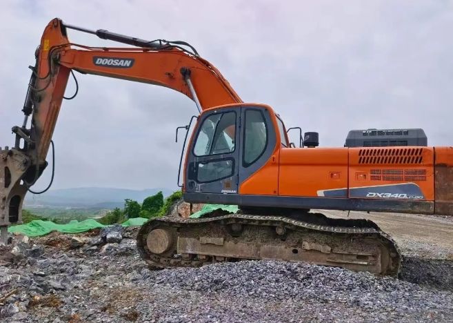 Doosan รถขุดตีนตะขาบใช้ DX340 34T มือสองพร้อมปั๊มกระปุกเกียร์เครื่องยนต์ yanmar และน้ำหนัก34ton มอเตอร์