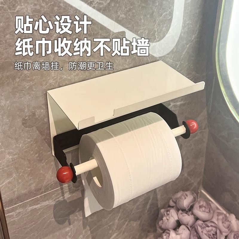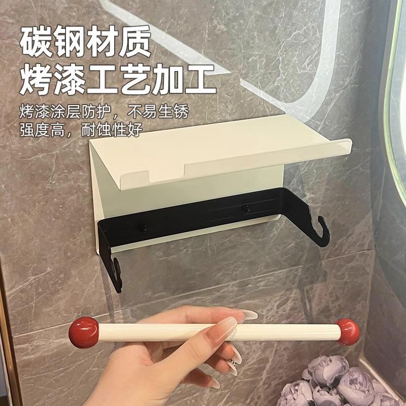 Dopamine Carbon Steel Wall Mount Toilet Paper Holder Milk Black Rectangular Contemporary Design With Phone Stand