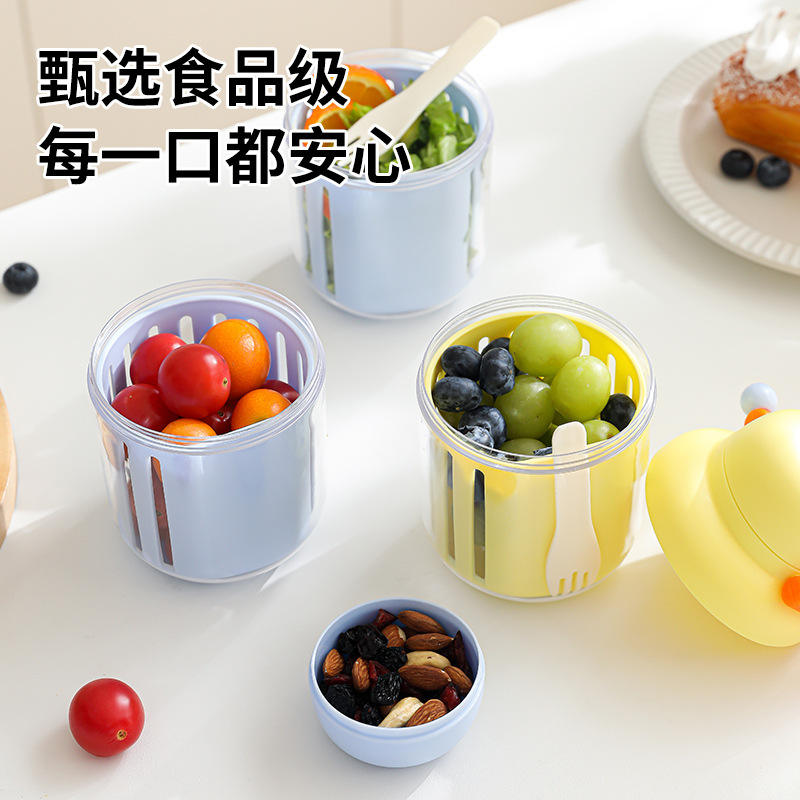 ถ้วยสลัดผลไม้โดปามีน 1-3 ลิตร ความจุขนาดใหญ่ พกพาสะดวก พร้อมส้อม กล่องอาหารกลางวันสำหรับปิกนิกกลางแจ้ง