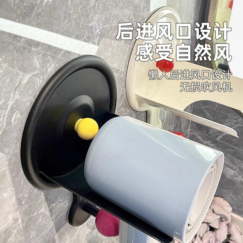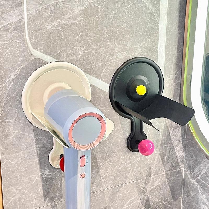 ที่วางไดร์เป่าผมโดปามีนพร้อมถ้วยดูด ดีไซน์กะทัดรัด สีดำ สำหรับชั้นวางของในห้องน้ำ