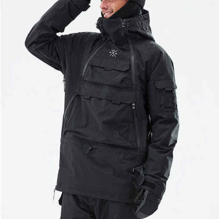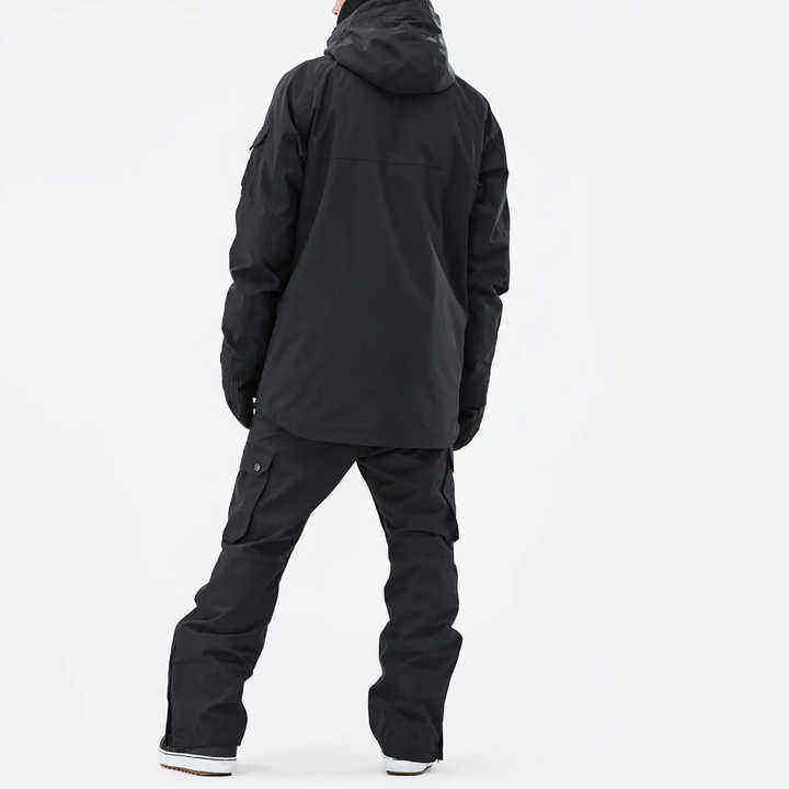 เสื้อแจ็คเก็ตสกี Dopee Unisex Anarok สีดำ กันน้ำ - เสื้อแจ็คเก็ตสโนว์บอร์ดแบบมีฮู้ด ไซส์ใหญ่ ปิดด้วยซิป ป้องกันลม บุด้วยผ้าเท็กซ์