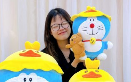โดราเอมอนตุ๊กตาสัตว์หมวกเป็ดของขวัญสุดน่ารักสำหรับเด็กและเพื่อน