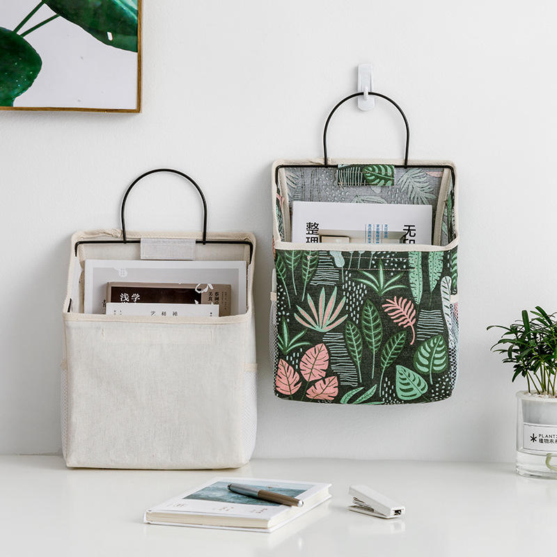 กระเป๋าเก็บของติดผนังสำหรับโต๊ะทำงานในหอพัก ผ้าแคนวาสทรงสี่เหลี่ยมผืนผ้า ใช้จัดระเบียบสำนักงานหรือตู้เสื้อผ้า