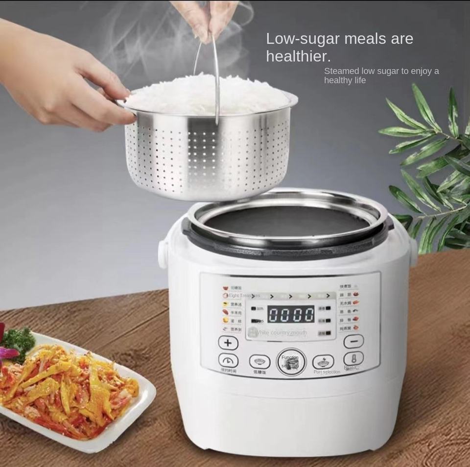 ฟังก์ชัน:ทำอาหารเวลาล่วงหน้า, จอแสดงผล LED, ไม่ติดเคลือบภายในหม้อ, การป้องกันความร้อนสูงเกินไป, อุปกรณ์ปล่อยแรงดัน, ปรับการตั้งค่าความดัน