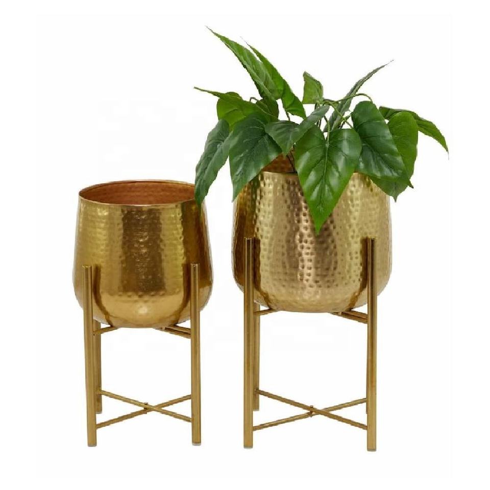 กระถางโลหะสีทองลายจุดพร้อมขาตั้ง2ขนาดสำหรับพื้นที่อยู่อาศัยโต๊ะเทียมและต้นไม้จริงของตกแต่งบ้าน