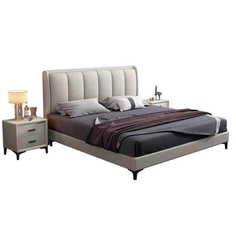 เตียงสองชั้นสีม่วงทันสมัย ขนาดเตียงเดี่ยว เตียงคู่ เตียงควีนไซส์ เตียงคิงไซส์ พร้อมโครงไม้ หุ้มหนัง ฟองน้ำเมมโมรี่โฟม และระบบสปริงแบบพ็อกเก็ตสปริงและบอนเนลสปริง