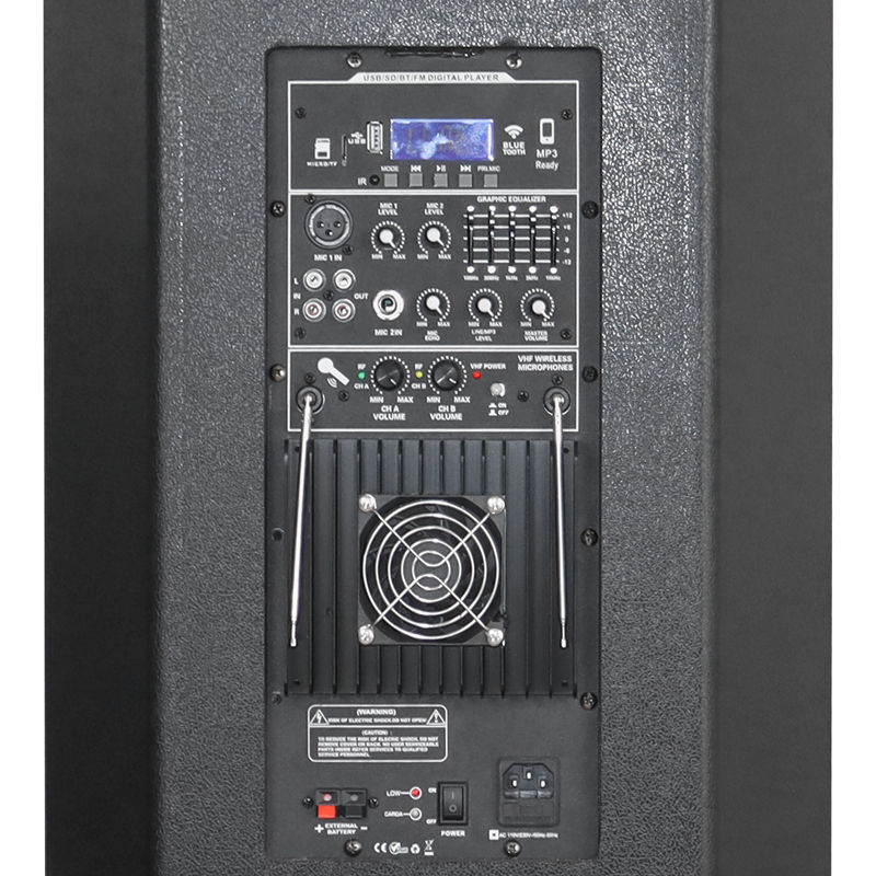 ลำโพงพลังสูงระดับมืออาชีพ15นิ้วแบบใช้แบตเตอรี่ใช้พลังงานจากดีเจ150W