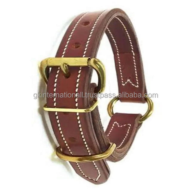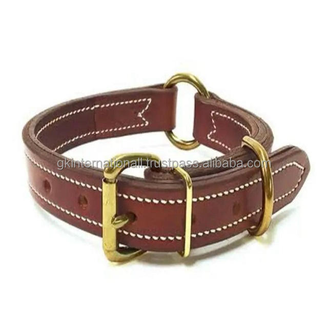 ปลอกคอสุนัขหนังแท้เย็บสีขาวปรับได้สองชั้นพร้อมหัวเข็มขัดทองเหลืองสําหรับงานหนัก D แหวนและห่วงราคาขายส่งจากโรงงาน