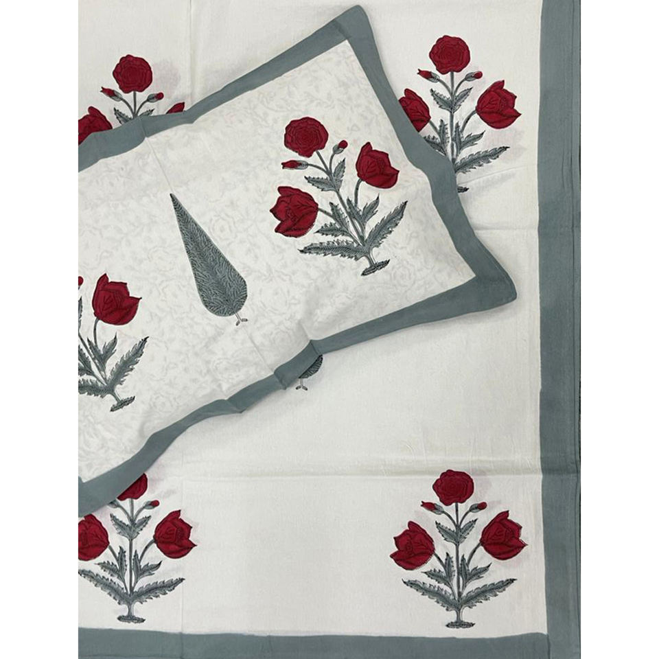 ผ้าปูที่นอนคู่สีขาวลายบัตต้าพิมพ์ลายด้วยมือ ผ้าฝ้าย 200 เส้นด้าย ลายเรขาคณิต ระบายอากาศได้ดี เหมาะสำหรับใช้ในบ้าน โรงแรม และงานตกแต่ง