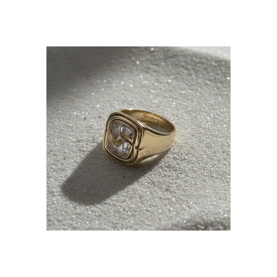 Double Bezel Letter Lab Grown Diamond Ring
