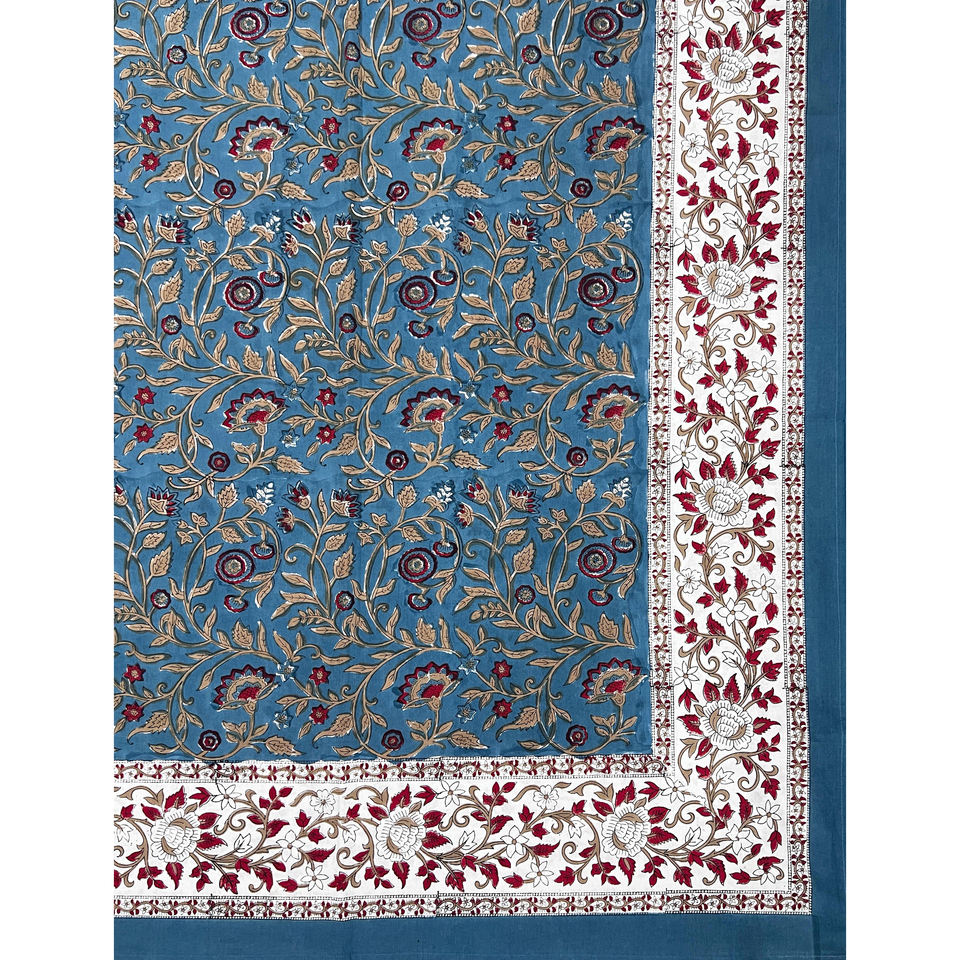 ผ้าปูที่นอนลายเรขาคณิตสีน้ำเงินคู่ ผ้าฝ้ายพิมพ์ลายด้วยมือ 200TC ระบายอากาศได้ดี เหมาะสำหรับใช้ในบ้าน โรงแรม และงานตกแต่ง
