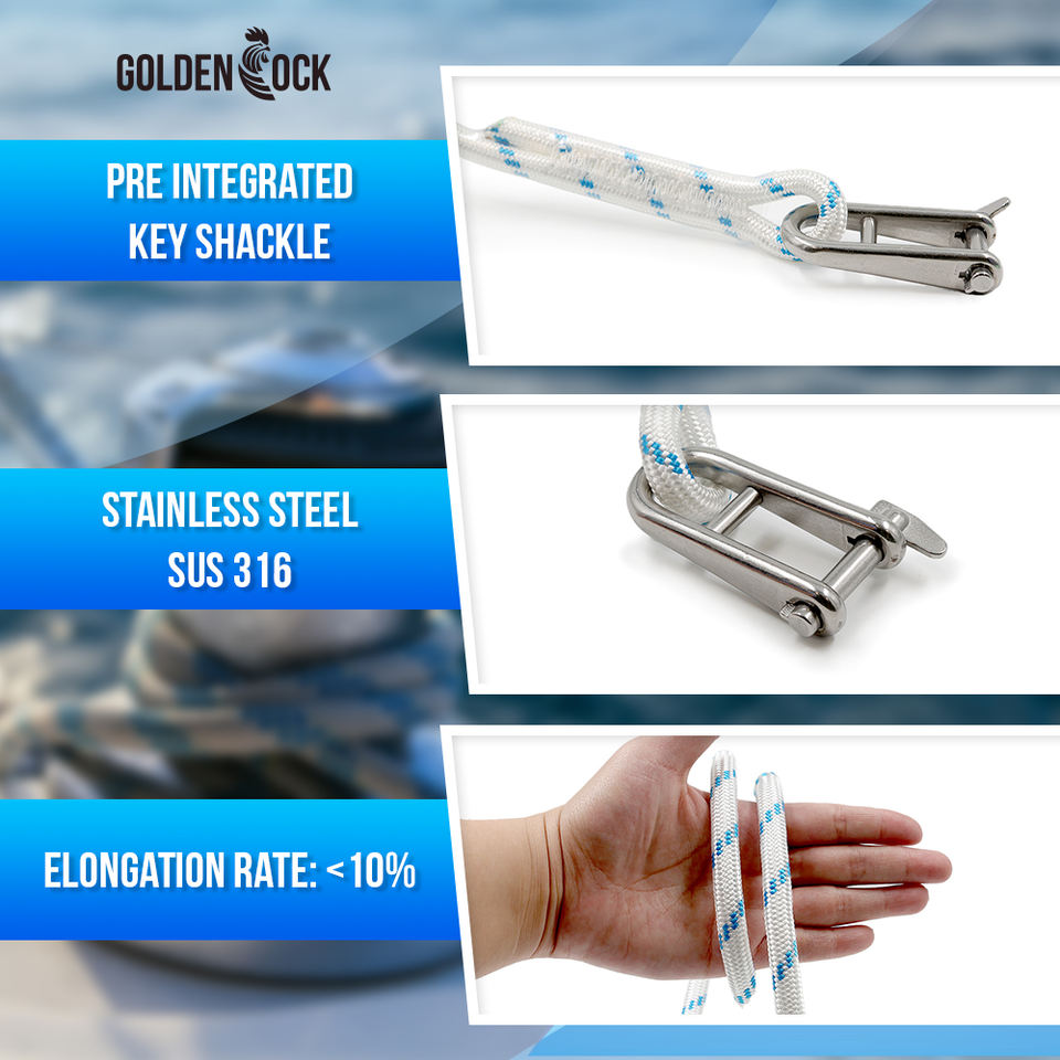 ไนลอนถักคู่3/8นิ้วสแตนเลส316หนัก115ฟุตสีน้ำเงิน (สีขาว) วัสดุเชือกยึด115ฟุตสำหรับงานหนัก