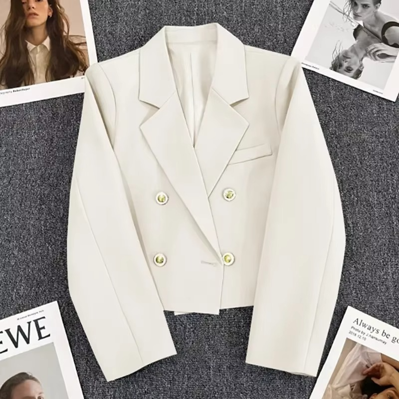 เสื้อเบลเซอร์ผู้หญิงแบบกระดุมสองแถว ผ้าสแปนเด็กซ์/โพลีเอสเตอร์ ป้องกันไฟฟ้าสถิต ปักมือ แขนสั้น ทรงปกติ แฟชั่น สง่างาม สไตล์ชุดสูท