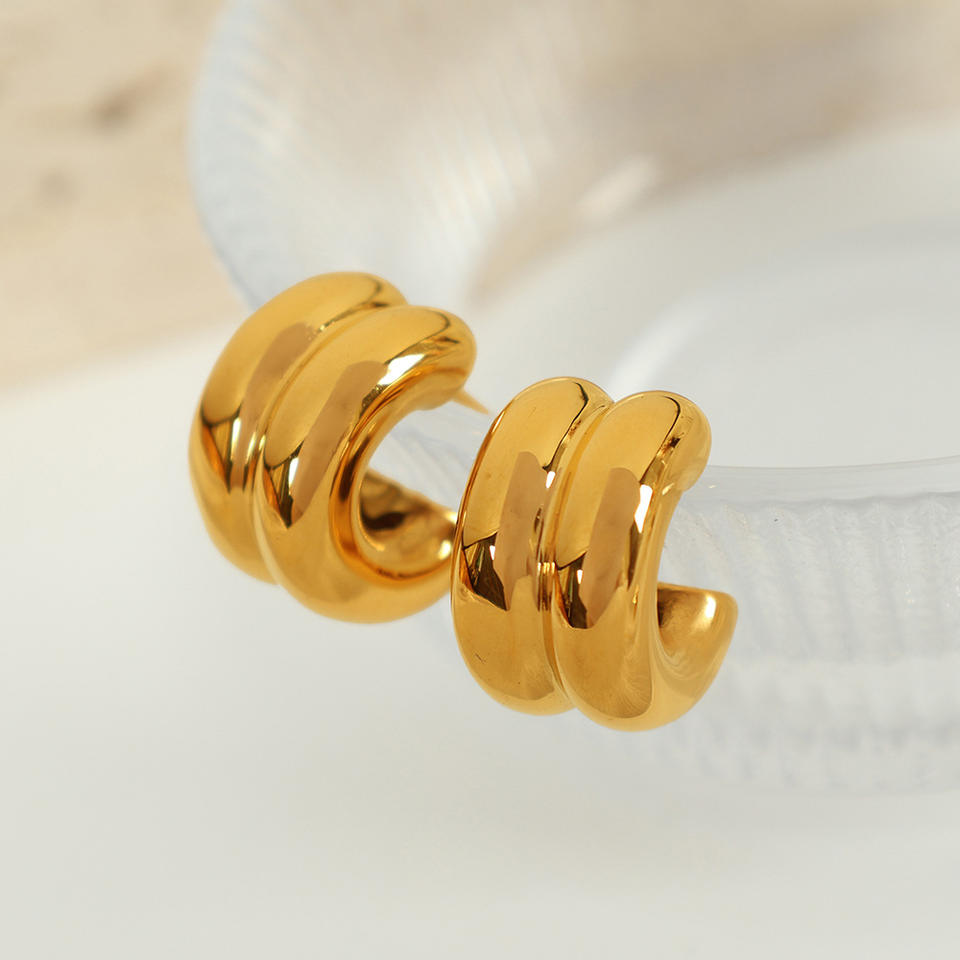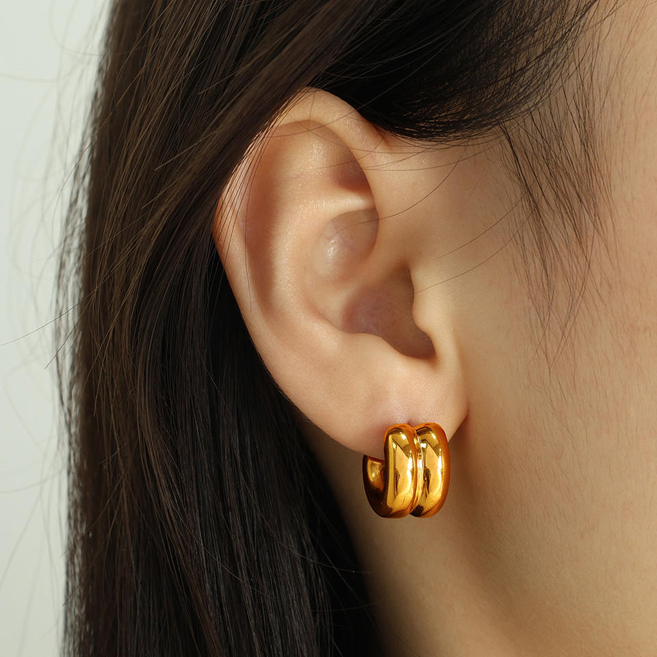ต่างหูห่วงคู่รูปตัว C ชุบทอง 18K ทำจากไทเทเนียมสตีล รูปทรงเรขาคณิต รูปตัว U เครื่องประดับแฟชั่นสำหรับผู้หญิง