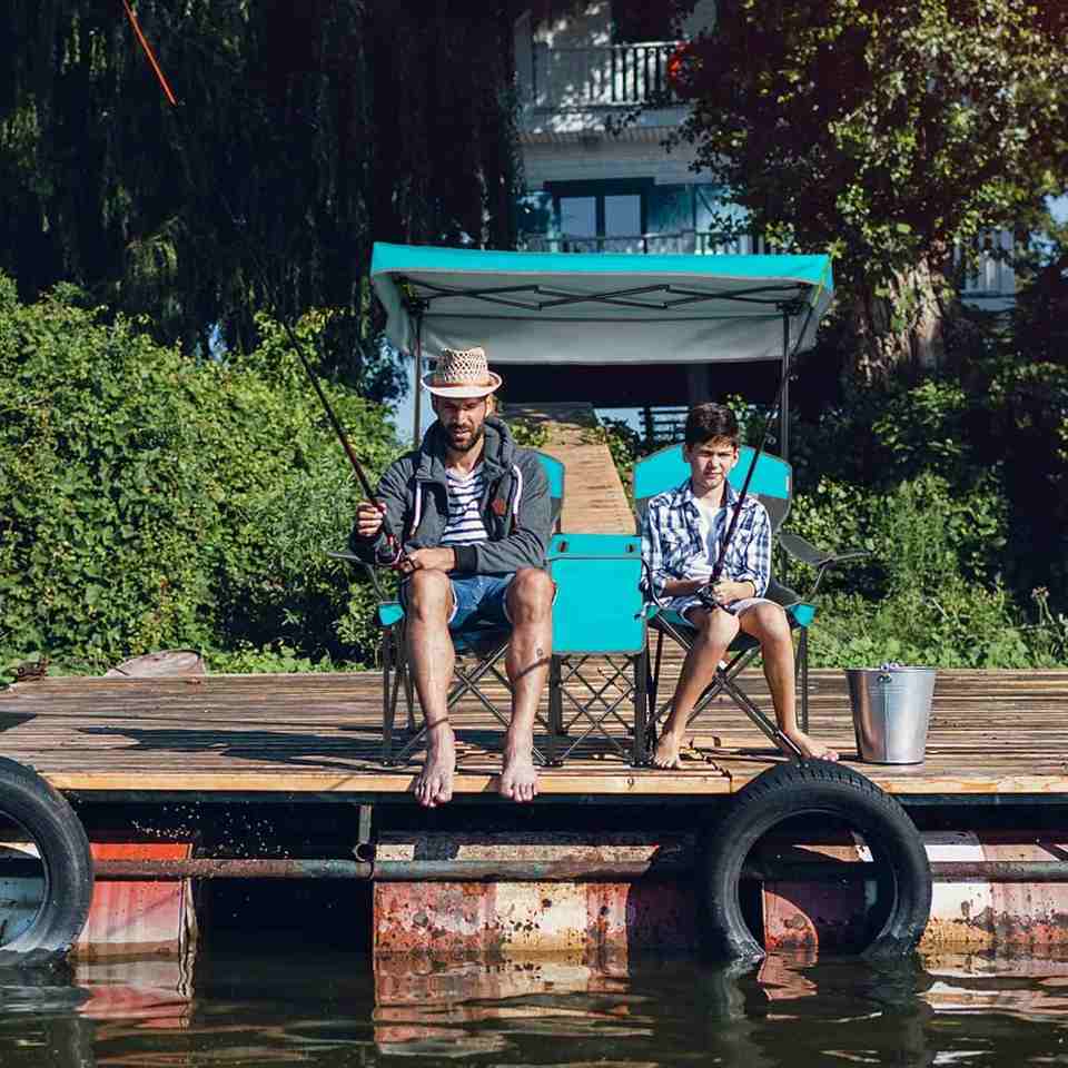 เก้าอี้ตั้งแคมป์2คนพับได้สำหรับการเดินทางกลางแจ้งปิกนิกชายหาดตกปลาสวนพักผ่อน