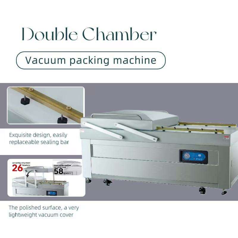 เครื่องบรรจุภัณฑ์สุญญากาศแบบสองห้อง ขนาดใหญ่ สำหรับธุรกิจ บรรจุข้าว อาหารปรุงสุก นมผง แข็งแรง น้ำหนักเบา ปรับแต่งได้