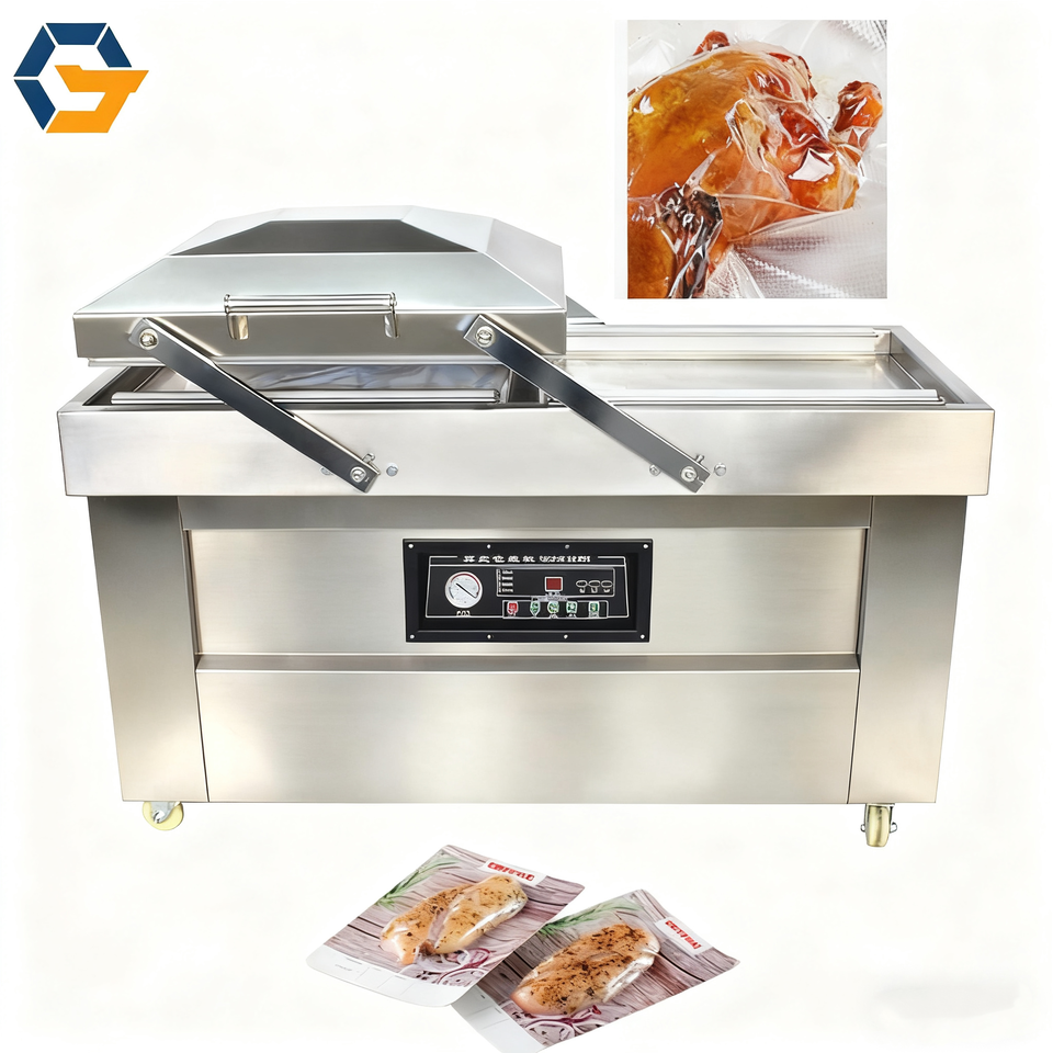 เครื่องบรรจุสุญญากาศสองช่องเครื่องบรรจุผลไม้เครื่องปิดผนึกสูญญากาศถาดสุญญากาศ