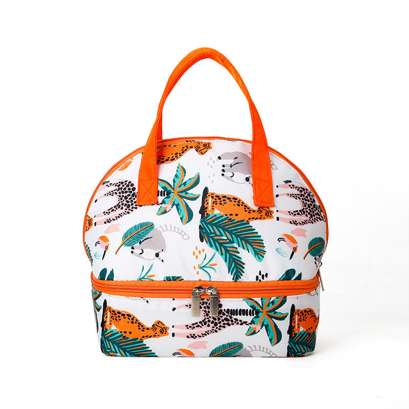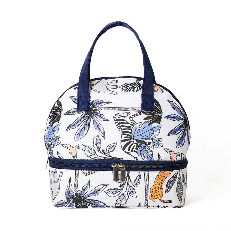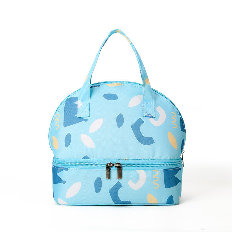 กระเป๋าใส่อาหารกลางวันแบบสองช่องพร้อมช่องล่างแบบมีซิปและฉนวนกันความร้อน พร้อมหูหิ้วพกพาสะดวกสำหรับโรงเรียน สำนักงาน ปิกนิกกลางแจ้ง