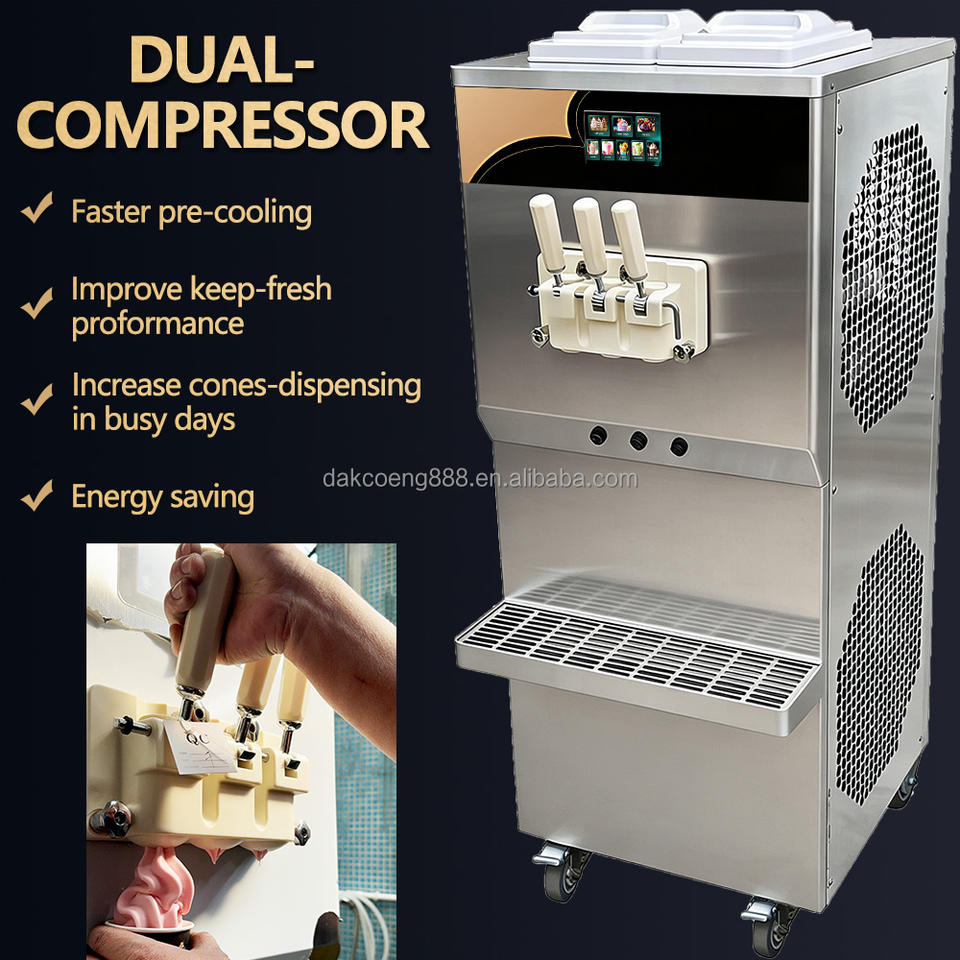 เครื่องทำไอศกรีมซอฟต์เสิร์ฟแบบคอมเพรสเซอร์คู่ สำหรับธุรกิจ ได้รับมาตรฐาน CE/ETL เครื่องขายไอศกรีมซอฟต์เสิร์ฟอัตโนมัติ เครื่องทำโยเกิร์ตแช่แข็ง