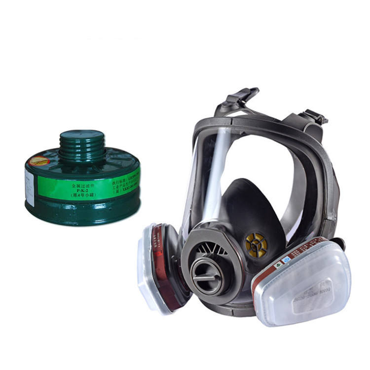 หน้ากากป้องกันสารเคมีแบบเต็มหน้า พร้อมอุปกรณ์เชื่อมต่อสองชั้น ป้องกันฝุ่นละอองและแก๊ส