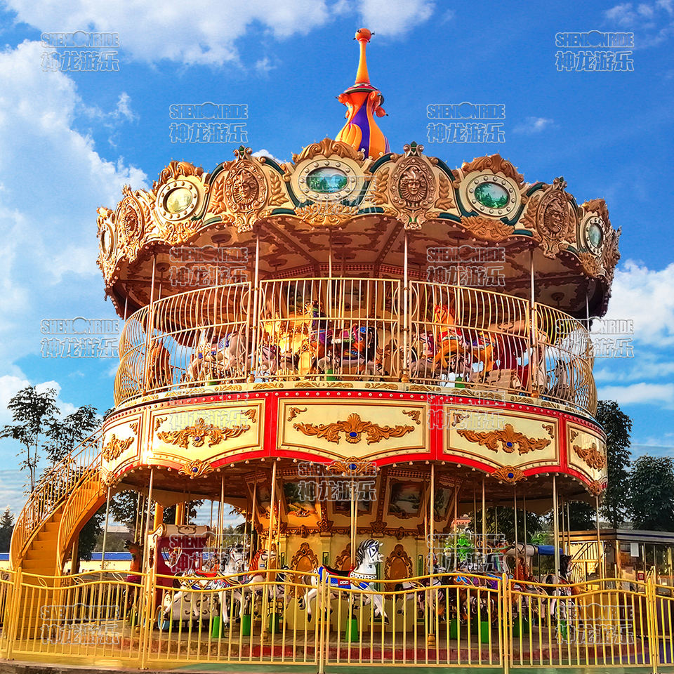 ม้าหมุนสองชั้นสำหรับเด็กและผู้ใหญ่ขี่ม้ากลางแจ้งสำหรับสวนสนุกสนุกม้าหมุนสำหรับสนามเด็กเล่น