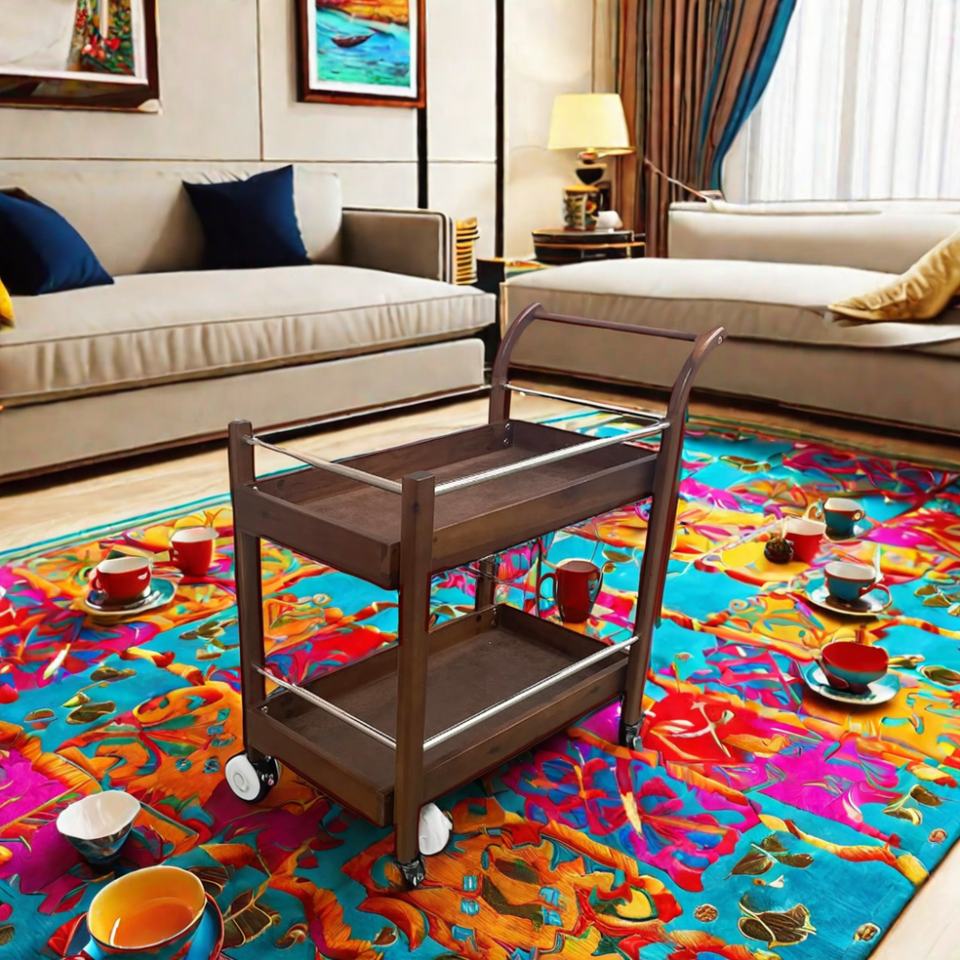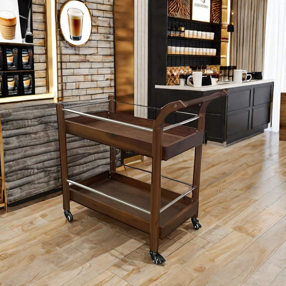 รถเข็นเคลื่อนที่ทำจากไม้สองชั้นสำหรับโรงแรมชื่อผลิตภัณฑ์