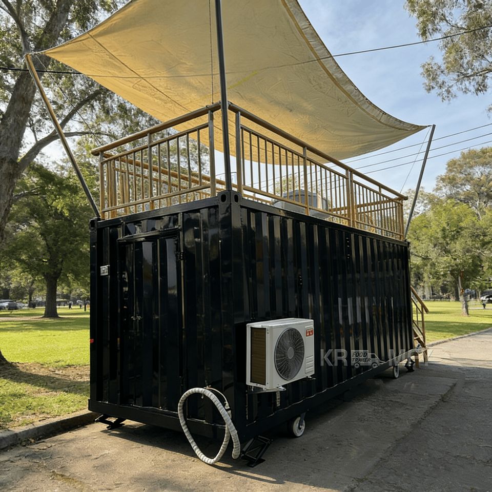 ร้านกาแฟบาร์ร่วมสมัยสองชั้นในตู้คอนเทนเนอร์ แข็งแรง ทนทาน