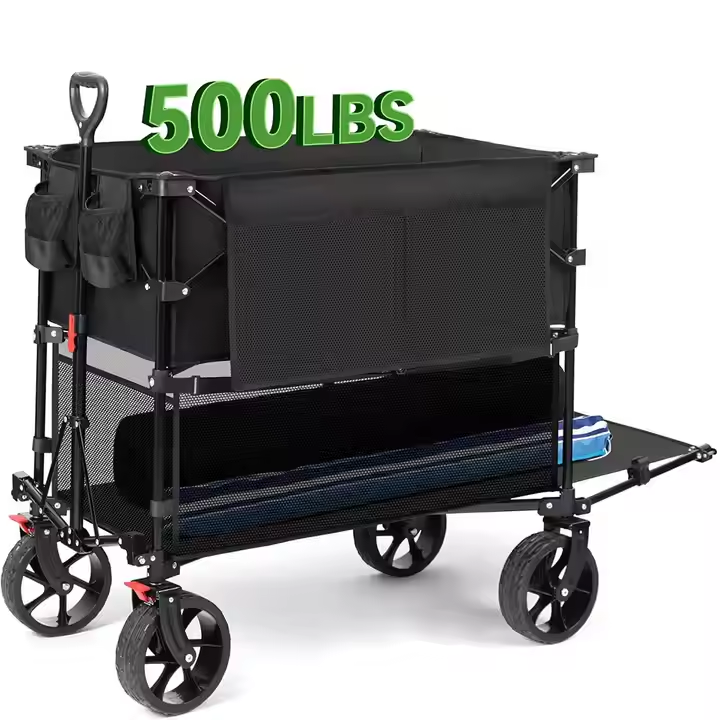 เกวียนสองชั้น400L เกวียนชายหาดขนาดใหญ่พิเศษพร้อมล้อขนาดใหญ่สำหรับทรายเกวียนพับได้พร้อมประตูท้าย
