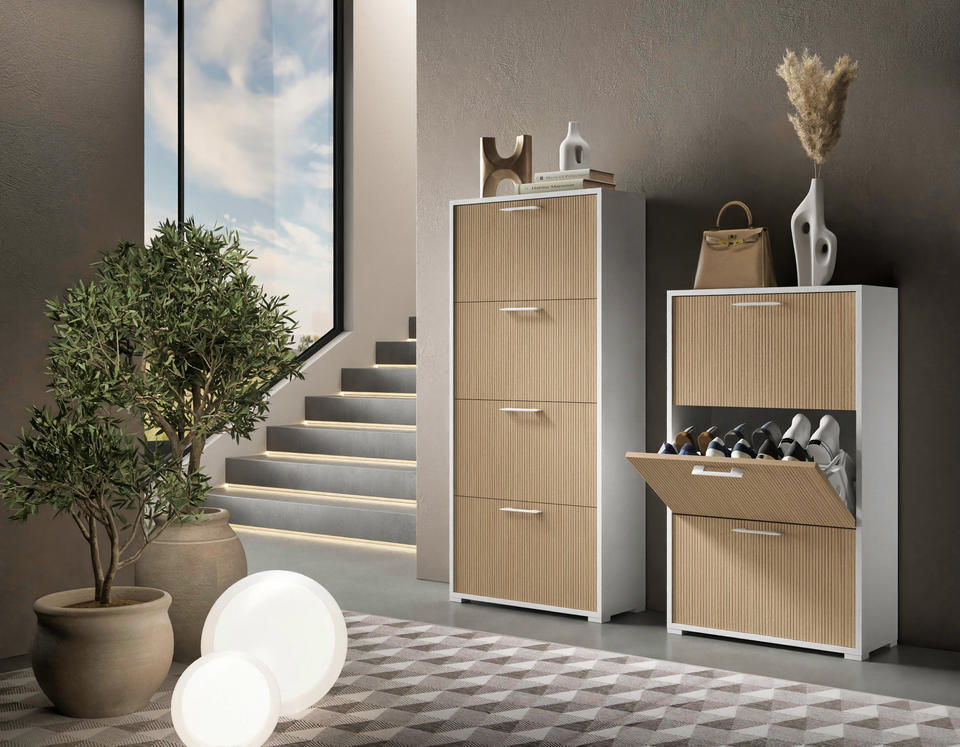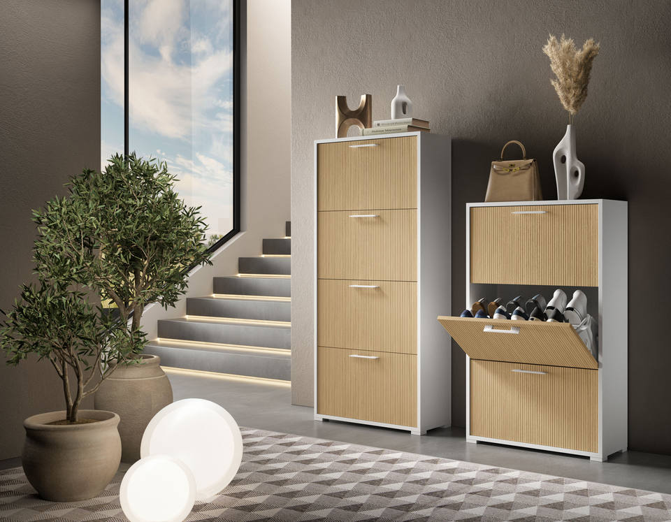 ตู้เก็บรองเท้าไม้แบบสองชั้น 3 ประตู จุรองเท้าได้ถึง 18 คู่ ชั้นวางรองเท้าแบบตั้งพื้นสไตล์โมเดิร์นมินิมอล