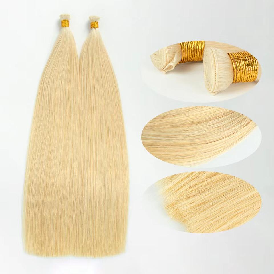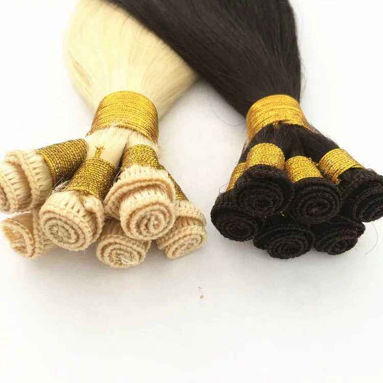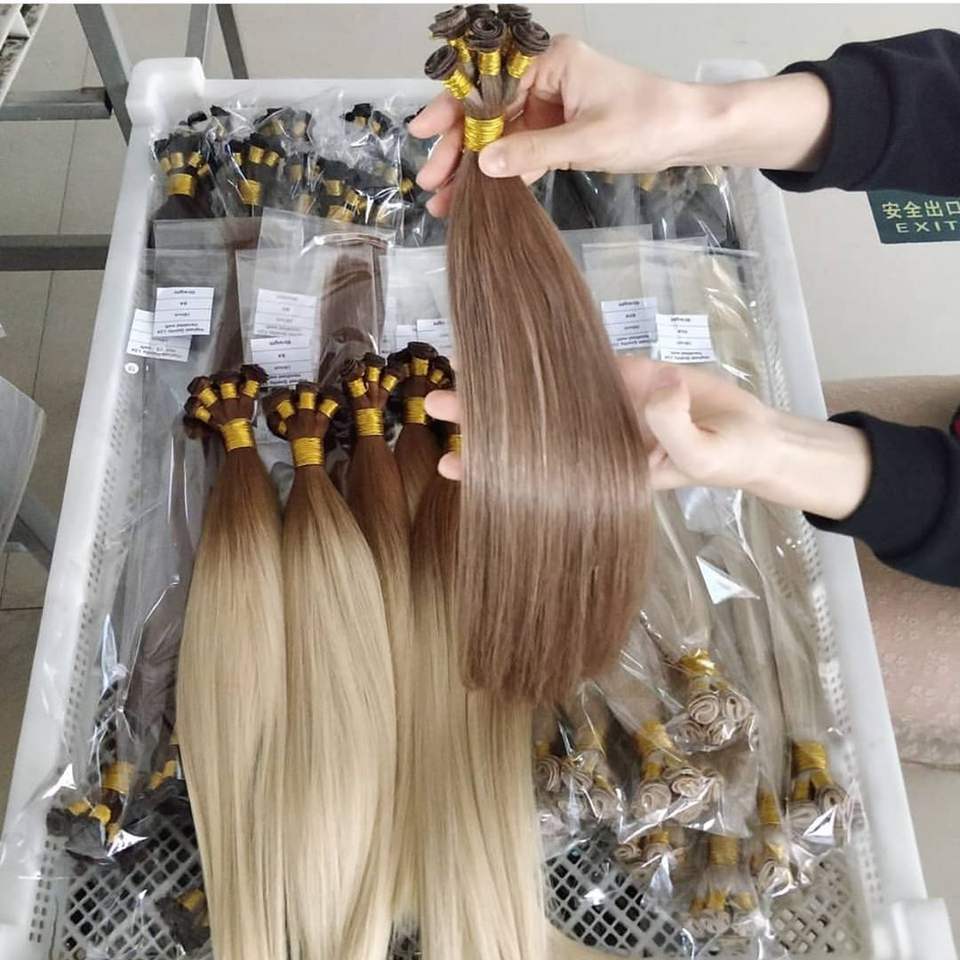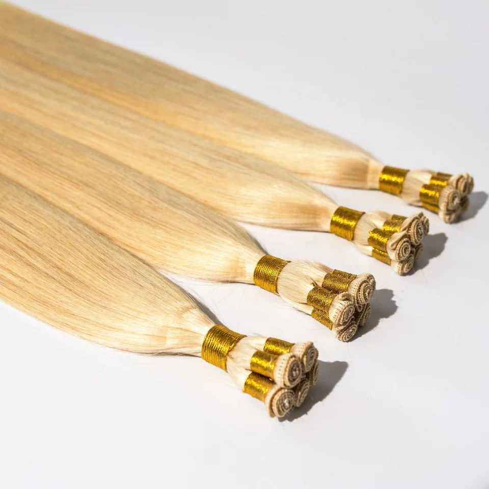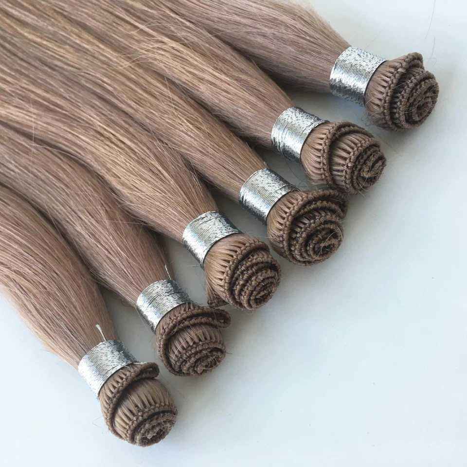 ผมต่อแบบแฮนด์ไทด์ ดับเบิ้ลดรอว์น วีร์จิ้น ฮิวแมนแฮร์ แบบแฮนด์ไทด์ โอเบร์บลอนด์ไฮไลท์ หนาทั้งศีรษะ ปลายหนา ติดทนนาน
