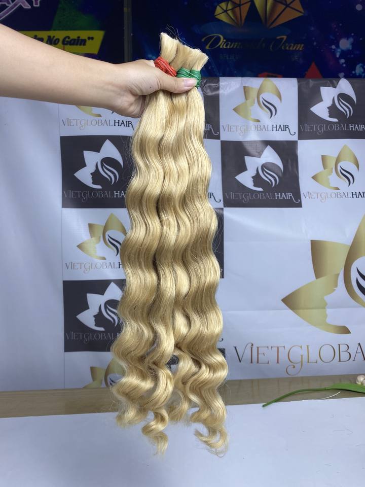 ผมต่อแบบเรมี่ต่อผมสีบลอนด์แบบดิบผมลอนธรรมชาติเกรด1