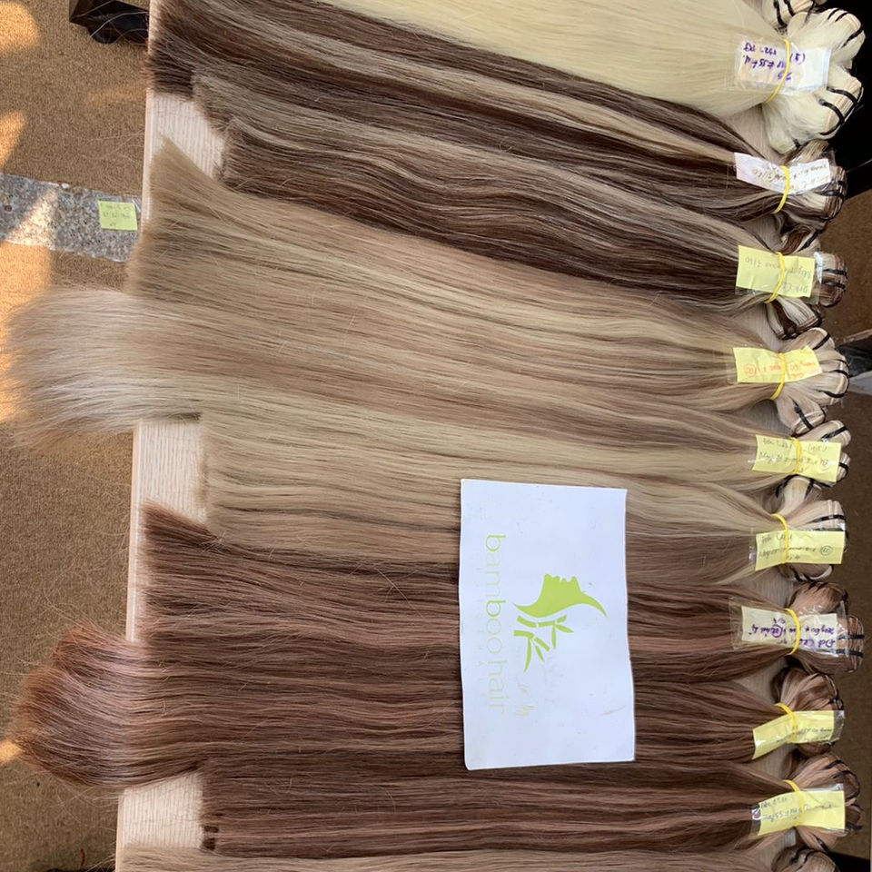 วาดคู่เวียดนาม Remy ผมสานตรงเครื่องอัจฉริยะผ้า Ombre สีดําสีบลอนด์สีน้ําตาลต่อผมไม้ไผ่ผม