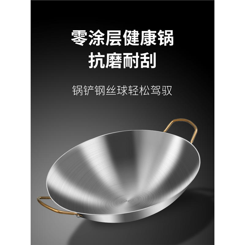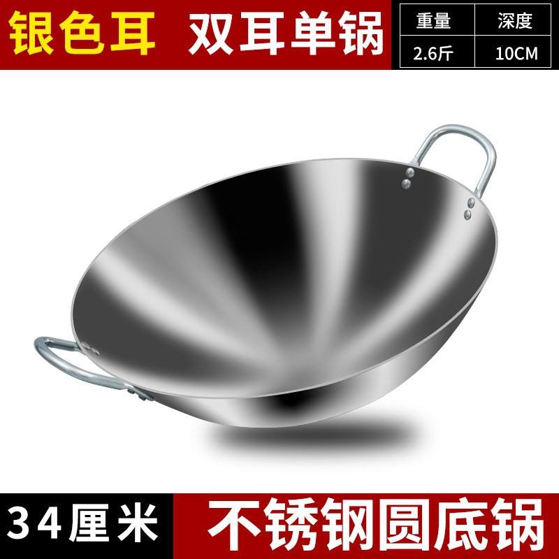 กระทะสแตนเลสสองหู 20 ลิตร ก้นหนา สำหรับเตาถ่านและเตาแก๊ส ไม่เคลือบสารเคมี หม้อเชฟอเนกประสงค์