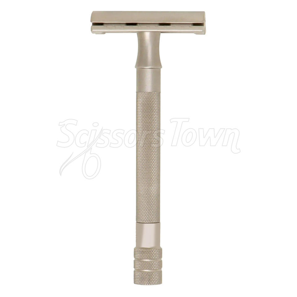 มีดโกนขอบปลอดภัยสองชั้นพร้อมการสร้างแบรนด์ส่วนบุคคลป้องกันสนิมโลหะและผิวแบบพรีเมี่ยม