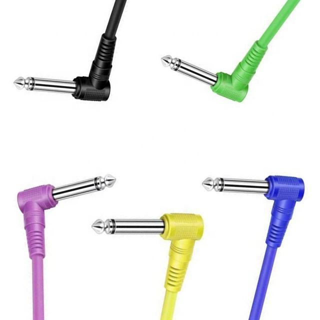 สายเคเบิลเอฟเฟคกีตาร์ไฟฟ้า ทองแดง ขนาด 6.35 มม. ข้อต่อ 90 องศา แบบสองข้อ